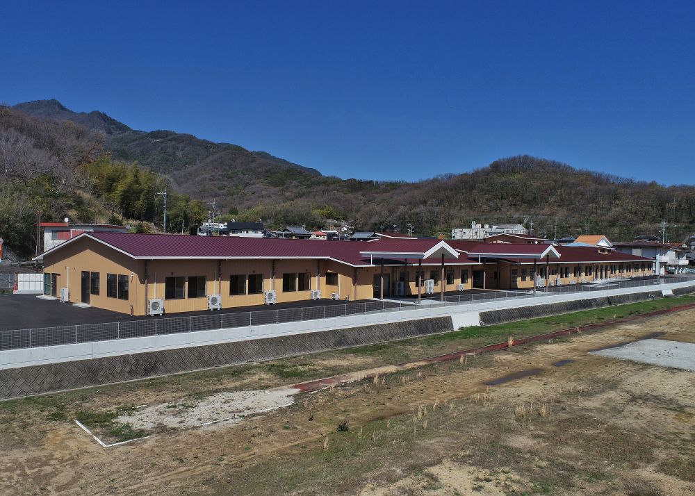 この高齢者施設は小豆島の風光明媚なロケーションにゆとりを感じる平屋建てで建設された。